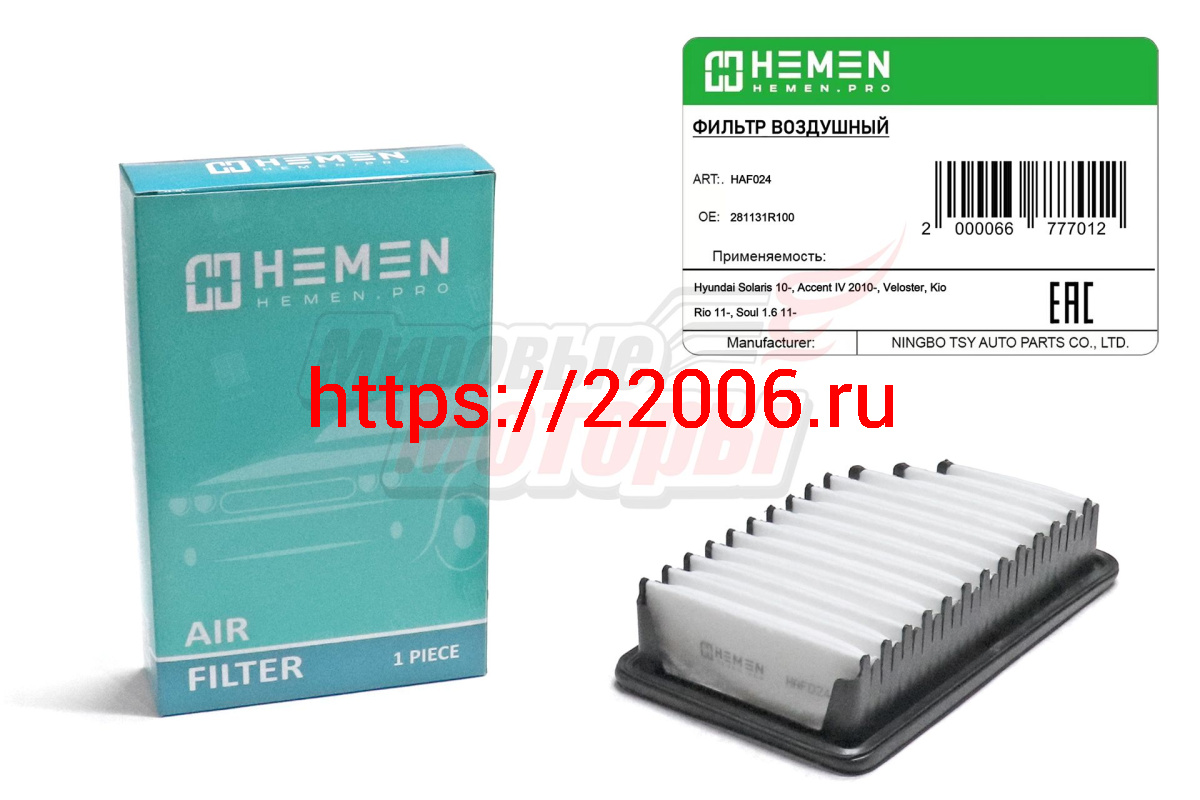 - Фильтр воздушный Hyundai Solaris 10-, Accent IV 2010-, Veloster, Kia Rio 11-, Soul 1.6 11- (HAF024) в Первоуральске недорого