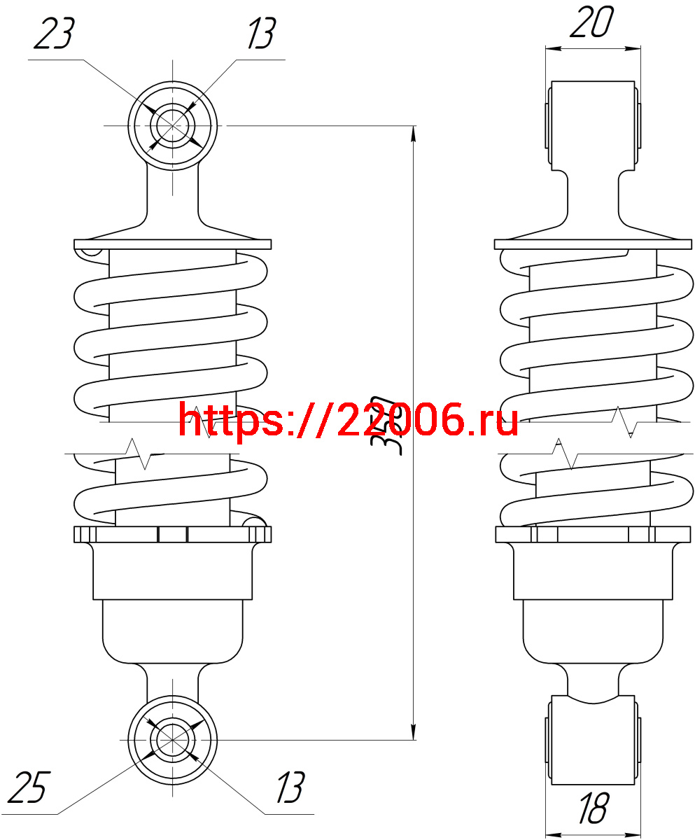 - Амортизатор зад. L-350, D1-23, d1-13,Н1-20, D2-25, d2-13, Н2-18 YBR125 (пара) в Первоуральске недорого