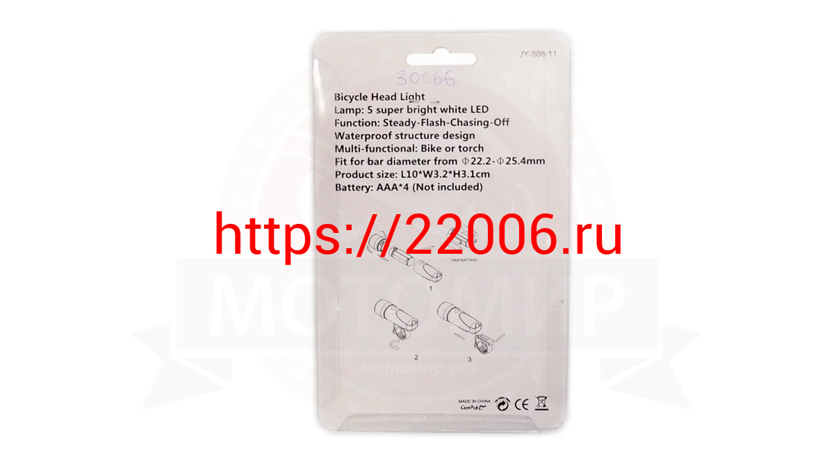 - Фара Вело передняя, 5 диодов, 98x30x69мм, материал ABS (4 батарейки ААА) (EBL 016-1) в Первоуральске недорого