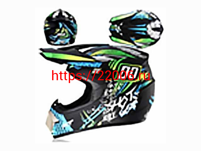 - Мотошлем VIRTUE MD-905 Кросс черный матовый с голубо-салатовым граффити (S) в Первоуральске недорого