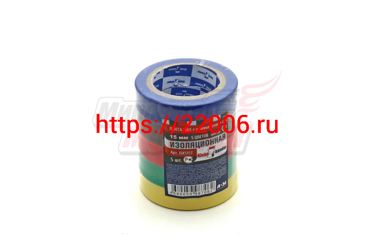 - Изолента ПВХ 15мм х 10м (комплект=5шт, 5цв.) Klebebander 66585-А в Первоуральске недорого