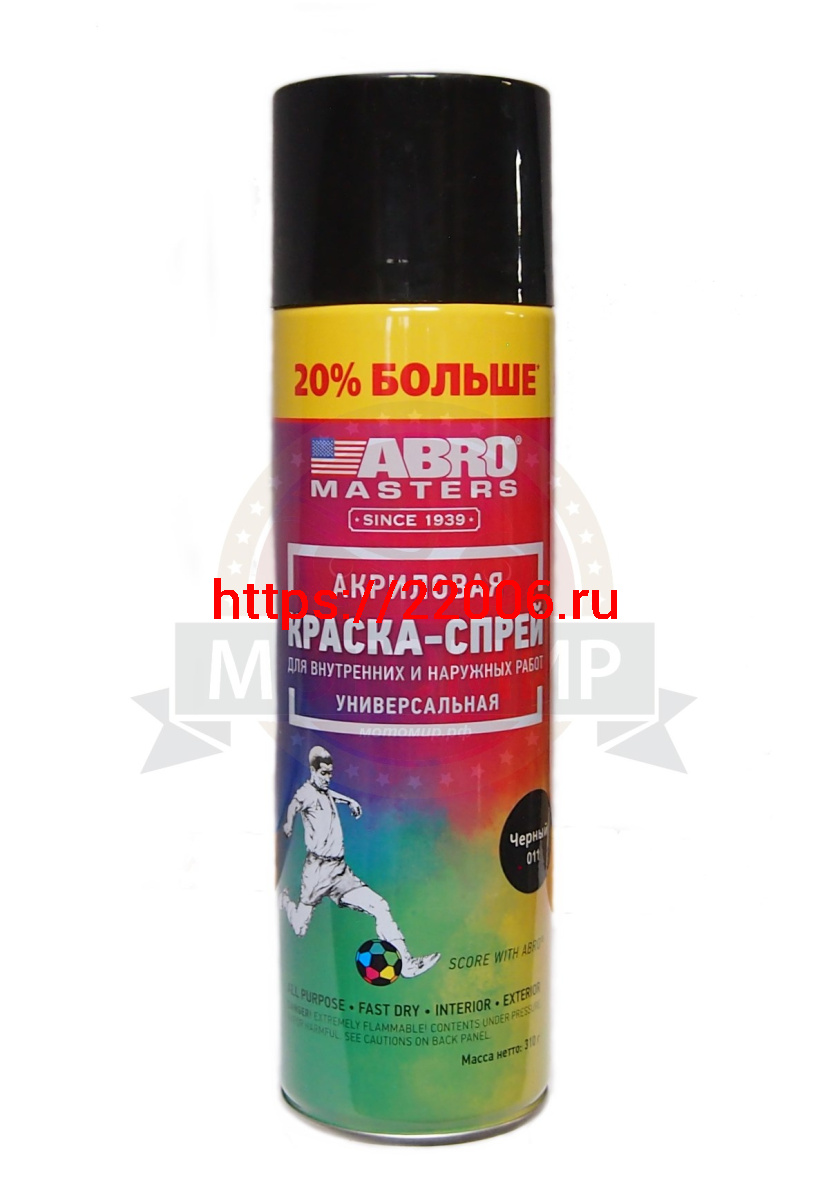 - Краска спрей ABRO masters +20%, универсальная ЧЕРНАЯ глянцевая аэрозоль, 310 мл. (SP-011-L-AM-RE) в Первоуральске недорого